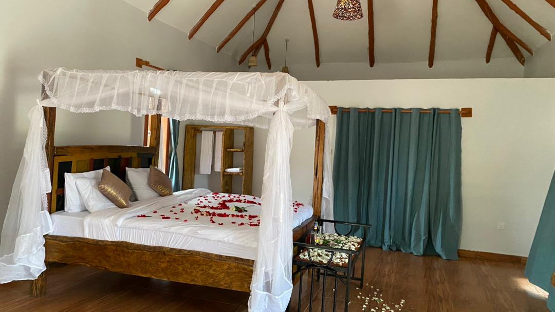 Our Double Suite with a King-Size Bed offers the perfect blend of comfort and elegance, making it an ideal retreat after a day of adventure in Tarangire. The spacious suite is tastefully furnished, featuring a luxurious king-size bed with premium linens, ensuring a restful night’s sleep.